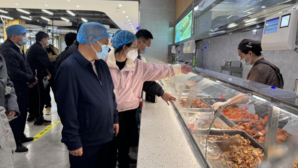 检查结束后,全体人员在沾益校区食堂内召开了十月食品安全调度会。龙勇副校长在听取了食品安全总监汇报的基础上,针对冬季食堂安全管理提出了工作要求,一是后勤保障处要联合保卫处进一步做好安全自检自查工作,要对食堂用水、用电、用气及防火安全隐患进行全面排查,并有针对性地做好整改工作;二是要做好从业人员健康检查工作,冬季是传染病高发时节,要加大食堂从业人员健康检查力度,严禁出现带病上岗情况;三是要加强食品质量检查,要严格按照规定做好食材留样、送检等工作,并留存好相关资料;四是要进一步做好舆情监测,要及时了解学生对食堂食品的反馈意见,及时发现问题并采取措施解决问题。