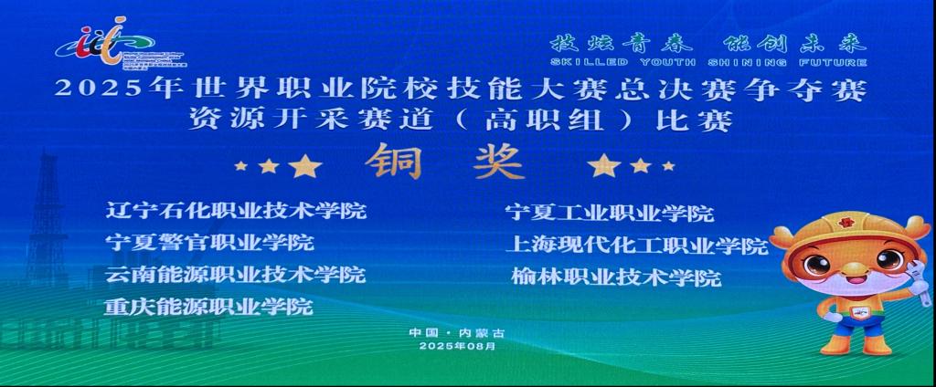 8月24日至8月28日,2025年世界职业院校技能大赛总决赛争夺赛资源开采赛道(高职组)在内蒙古化工职业技术学院举办,比赛共有来自全国26个省、市、自治区的57个参赛队参加,经过激烈角逐,我校资源与环境工程学院参赛队斩获铜奖。