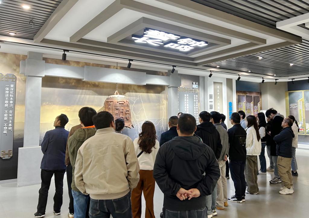 在基地工作人员的引导下,全体人员共同观看了警示教育片,并依次参观“警钟长鸣”“各个时期查处的反腐案例”“初心如磐,筑梦复兴”三个展厅。展厅中陈列的违纪违法典型案例,涵盖多个领域和不同层级,生动呈现了涉事人员从思想滑坡、权力滥用,直至最终身陷囹圄的完整过程,深刻揭示了腐败行为对个人、家庭、社会乃至国家造成的深远危害,为大家带来了一次触及灵魂的思想洗礼与警示教育。活动最后,全体党员面向党旗,重温入党誓词,铿锵有力的宣誓声久久回荡。