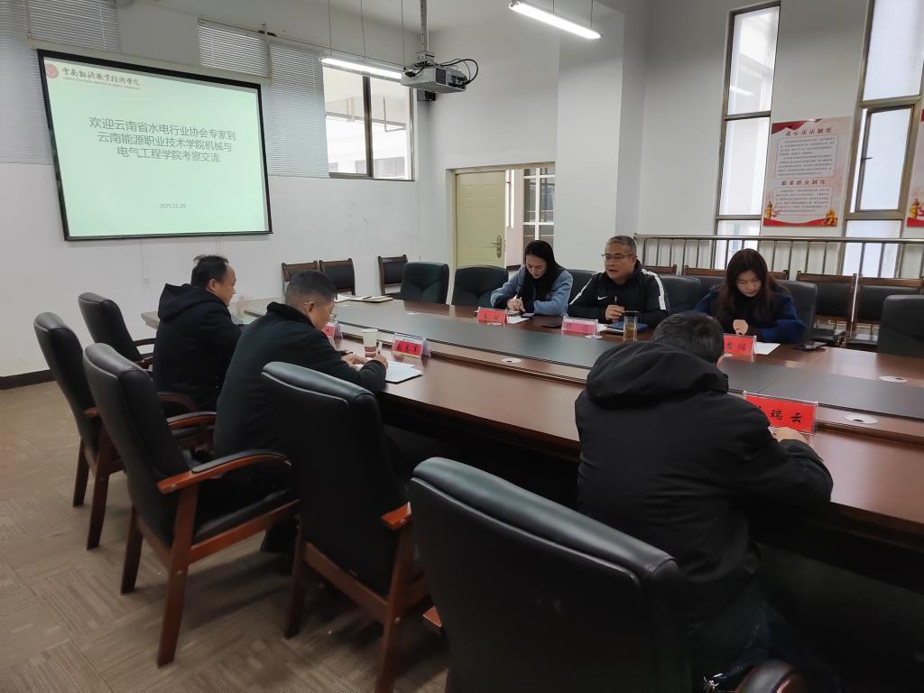 为进一步提升我院水电站运行与智能管理专业人才培养质量,推动专业建设高质量发展。2025年11月20日,云南省水电行业协会专家张志军、吴肆一行到机械与电气工程学院考察交流。学院院长何滔、副院长范瑞云、电气教研室主任高璇、水电站运行与智能管理专业带头人陈忠润参加座谈。