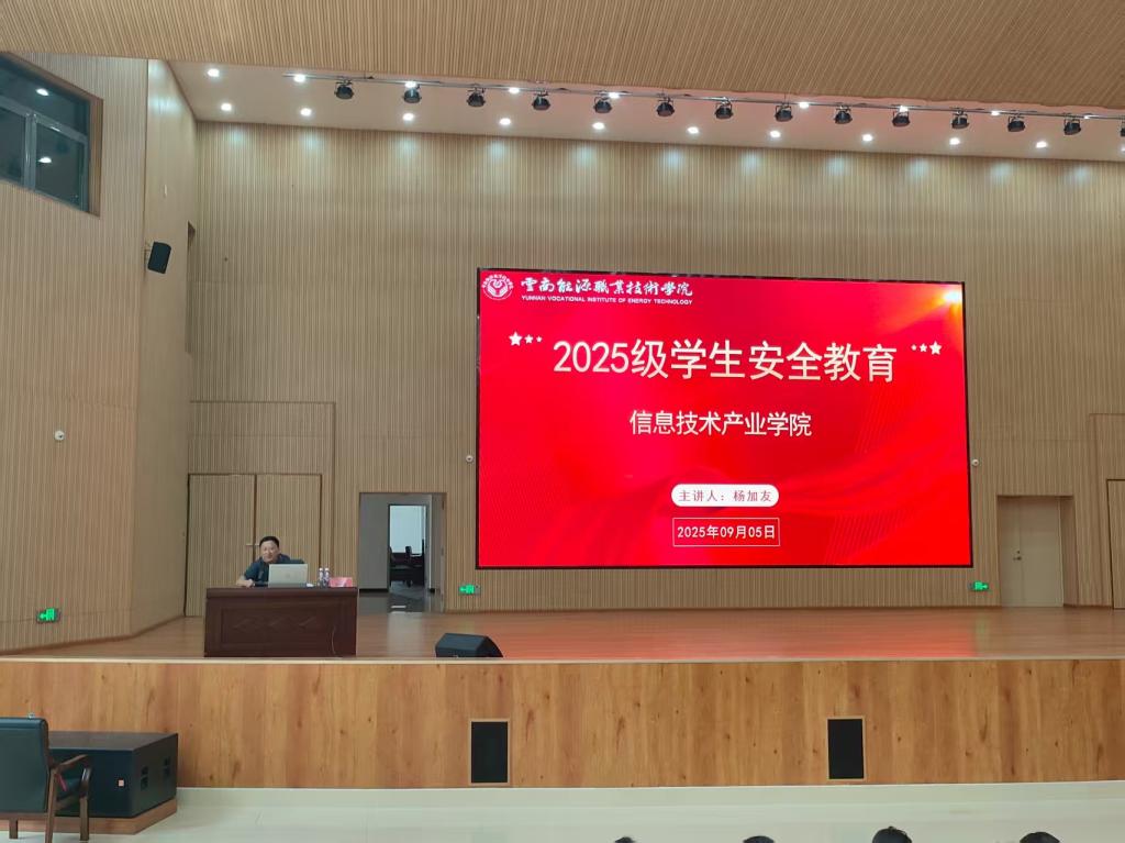 为切实增强2025级新生的安全防范意识与自我保护能力,筑牢校园安全防线,近日,信息技术产业学院为近900名新生举办安全教育专题讲座。本次讲座分两场进行,特邀学校学工处处长杨加友、学院党总支书记王林玉作为主讲人。