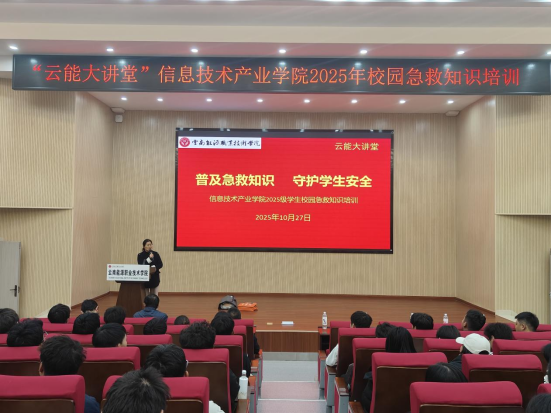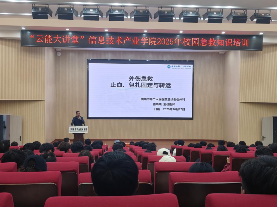 为普及应急救护知识,提升2025级学生应对突发状况的自救与互救能力,10月27日,信息学院邀请曲靖市第二人民医院的四位专业医生走进校园开展了急救知识培训。信息学院2025级学生代表、班主任共计200余人参加活动,活动由党总支书记王林玉主持。