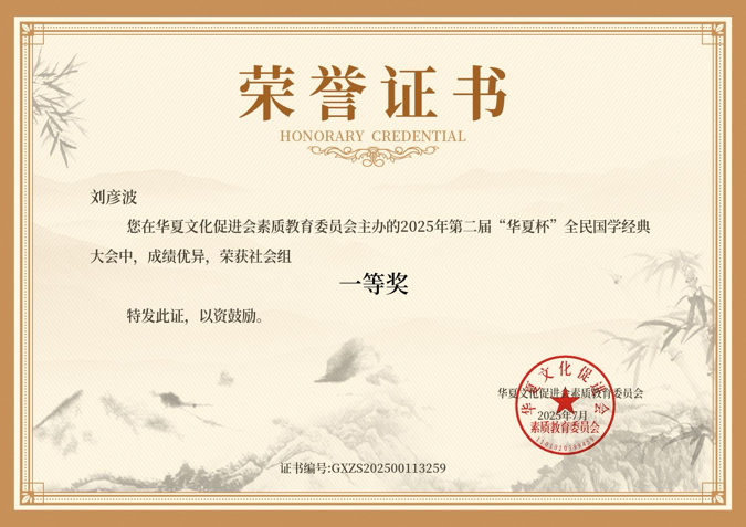 热烈祝贺我校经济与工商管理学院党总支书记刘彦波老师在全国第二届“华夏杯”全民国学经典大赛中斩获社会组一等奖。
