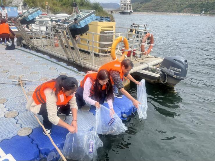 考察结束后,马克思主义学院教师代表一行受邀参与牛栏江公司在德泽水库举办的增殖放流活动。现场,教师代表与企业人员协同配合,将一批优质鱼苗有序投放至水库中。放流的鱼苗将通过自然生长繁殖,助力补充水库水生生物资源,改善水域生态环境。此次增殖放流活动,不仅是一次生动的生态实践,更是一堂鲜活的生态文明教育课。