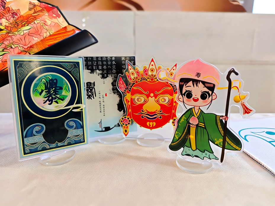 展会现场,云南能源职业技术学院的展区摆满了学生们充满巧思的文创产品:绘有古典人物的折扇将曲靖历史场景中的人文风貌具象呈现;印着图腾的帆布包,灵感源自曲靖古老民俗艺术;融合曲靖文化符号的纸扇、钥匙扣、装帧精美的摆件等,既保留曲靖文化底蕴,又兼具现代审美与实用价值。这些作品将曲靖爨文化、民俗风情、山水意境等元素,通过年轻化的设计语言重新诠释,成为年轻人乐于携带的“文化符号载体”。
