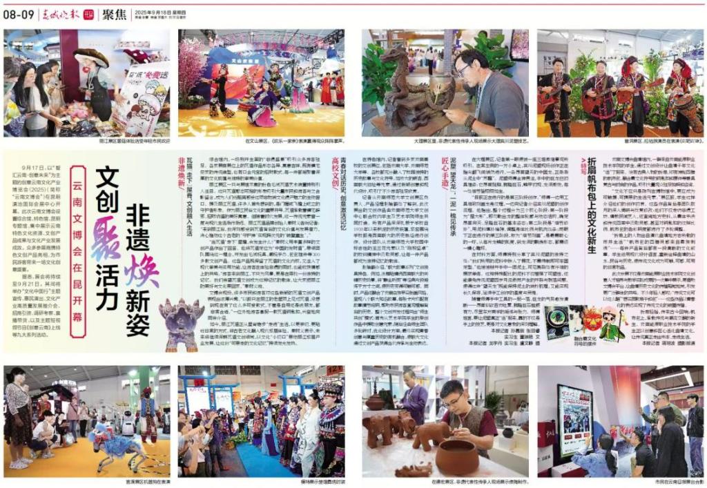 据省级新闻媒体《春城晚报》(http://ccwb.yunnan.cn/content/202509/18/content_279739.html)对展览现场的报道,云南能源职业技术学院的学生们凭借创意与匠心对曲靖文化进行创新演绎,推动当地文化实现从书本到生活的落地转化。