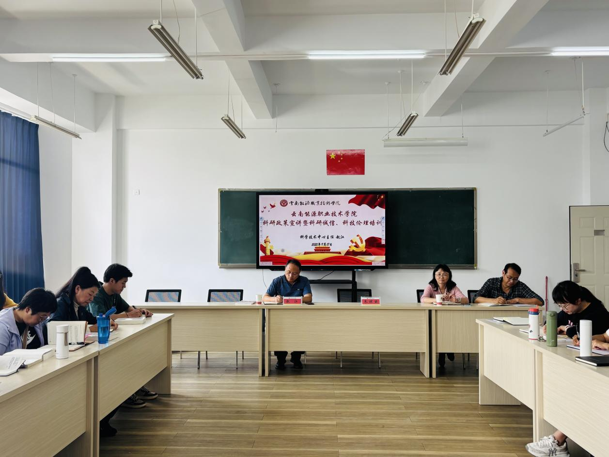 赵江主任以“学院科研政策宣讲暨科研诚信、科技伦理培训”为题,围绕高职院校教科研工作核心维度展开培训,内容涵盖五大方面:一是明确高职院校教科研的定位,二是阐释高职院校教科研的重要作用,三是剖析我校教科研工作现存短板,四是解读学校现行科研支持政策,五是强调学校科研诚信建设要求。同时,他着重指出,学校教科研工作需以服务国家战略和区域经济发展为导向,全力构建 “科研创新 - 技术服务 - 成果转化” 一体化发展模式,为教师开展科研工作提供清晰指引。