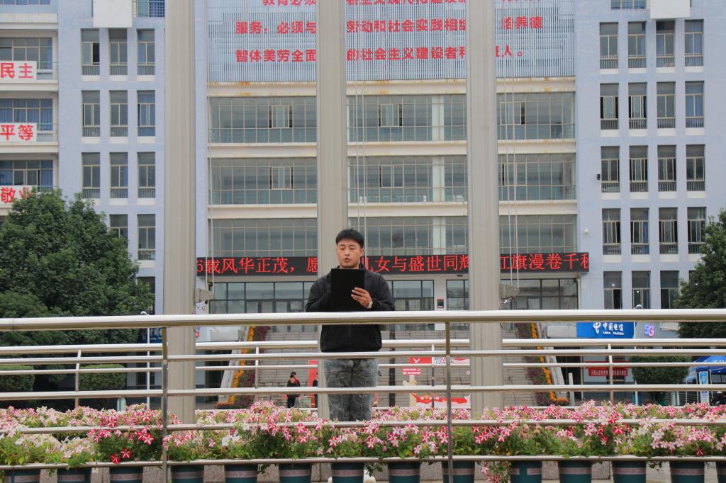 升旗完毕后,资环学院徐海涛、人文学院杨晶晶两位同学作为学生代表,以“青春向党,强国有我”为主题作了国旗下的讲话,展现了新时代高职学子坚定的理想信念与使命担当。