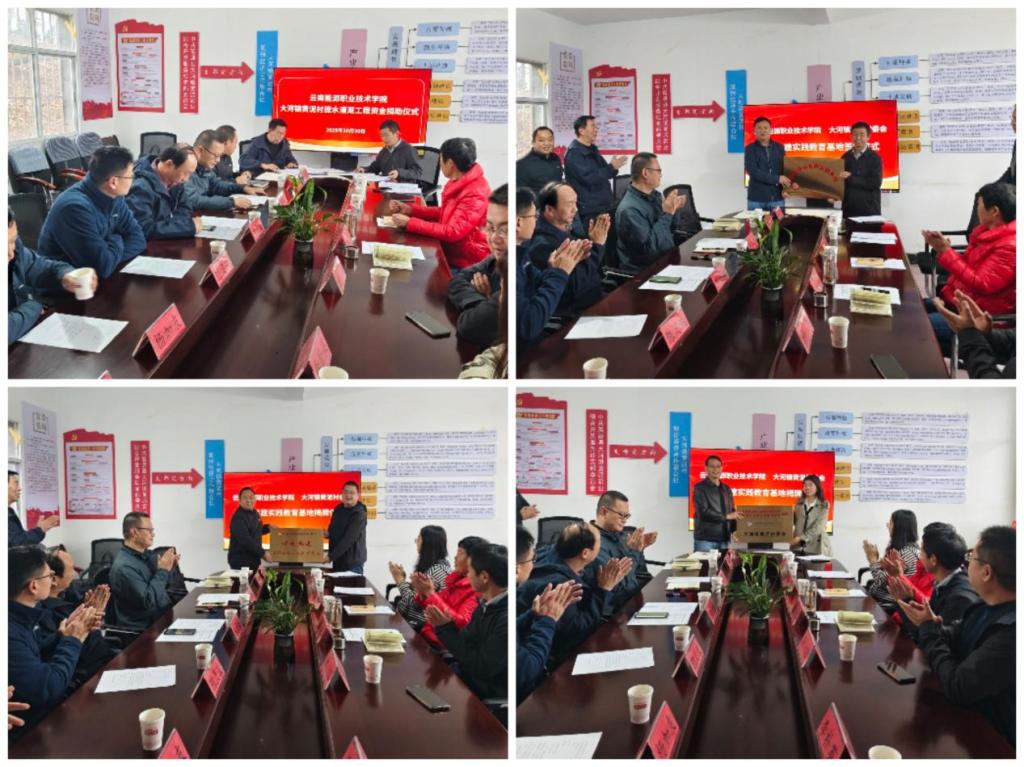 为进一步巩固拓展脱贫攻坚成果,全面推进乡村振兴,扛牢帮扶责任,充分发挥产业帮扶在乡村振兴中的积极作用。2025年10月30日上午,云南能源职业技术学院党委副书记、校长陈智刚,党委副书记杜运夯,纪委书记陈灵波,以及乡村振兴办、学生处、团委、马克思主义学院、机械与电气工程学院各部门负责人到富源县大河镇黄泥村开展提水灌溉工程捐助仪式和校地共建育人基地揭牌仪式,大河镇人民政府镇长李德林、人大主席龚锐、党委副书记汤旭、副镇长李朴英参加会议。