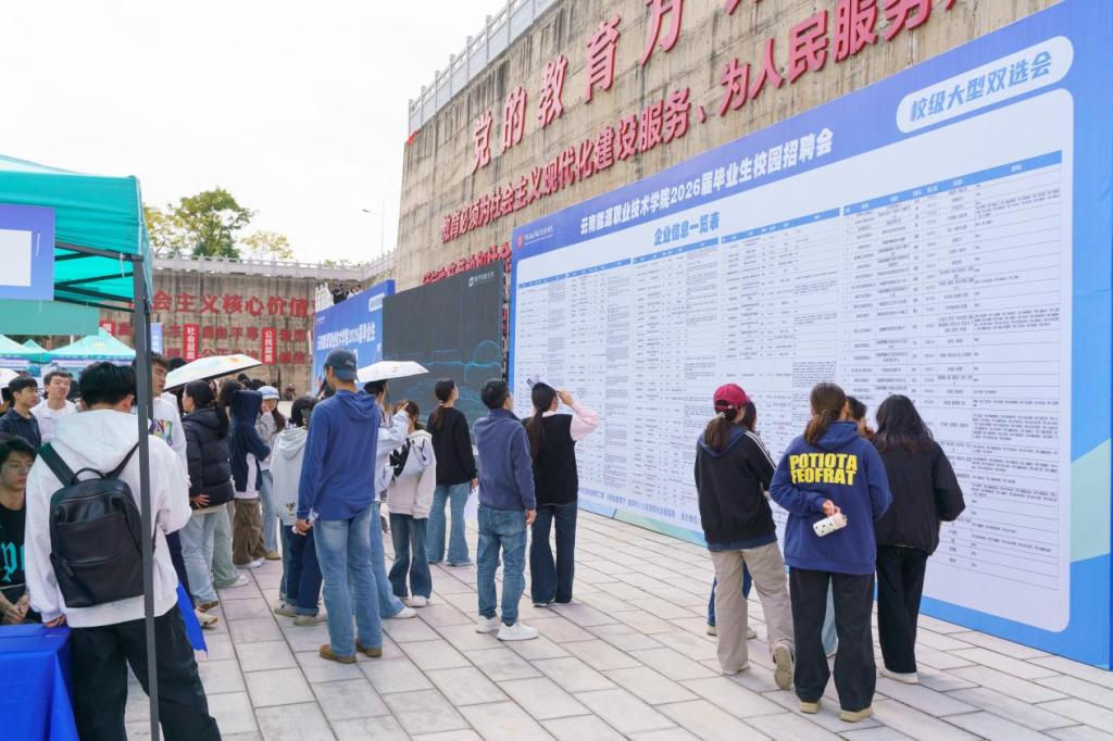 为搭建毕业生与用人单位双向选择平台,促进2026届毕业生更充分、更高质量就业,10月31日,我校在沾益校区成功举办了2026届毕业生校园招聘会。