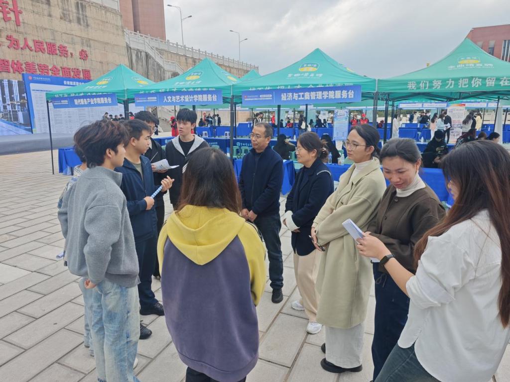 在招聘会现场,桂林斌副校长特别关心应聘学子的情况,他与正在求职的学生亲切交谈,仔细询问求职意向和应聘进展,鼓励同学们要立足云南、服务区域经济发展,充分发挥专业技能,积极争取理想的工作岗位。