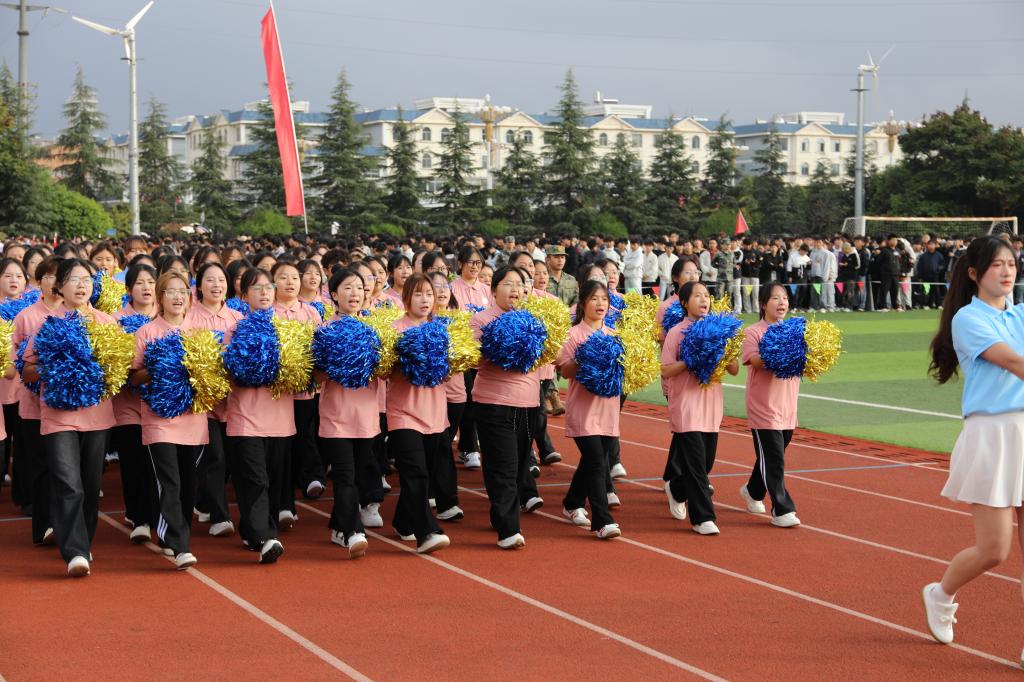 杜运夯副书记宣布云南能源职业技术学院第六届体育文化节暨第四十三届运动会开幕。在啦啦操表演和武术表演后,来自两校区的运动员正式在赛场展开激烈角逐。