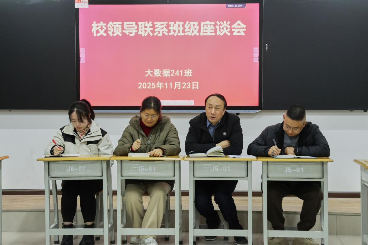 2025年11月23日晚上,校长陈智刚走进大数据241班主题班会现场,与青年学子们围坐一堂,围绕“将个人成长融入国家发展大局”这一主题展开深入交流。