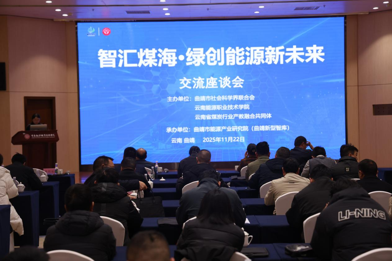 为深入贯彻创新驱动发展战略,推动煤炭产业绿色化、智能化转型升级,2025年11月22日,“智汇煤海・绿创能源新未来”交流座谈会在曲靖顺利召开。本次座谈会由曲靖市社会科学界联合会、云南能源职业技术学院、云南省煤炭行业产教融合共同体主办,曲靖市能源产业研究院承办,政行校企多方代表齐聚一堂,共商煤炭产业转型发展新路径。云南省煤炭产业集团有限公司及其下属公司、曲靖市能源局、曲靖隆基硅材料有限公司、第一批曲靖新型智库等20余家单位领导及代表参加会议,会议由云南能源职业技术学院副院长朱琼丽主持。