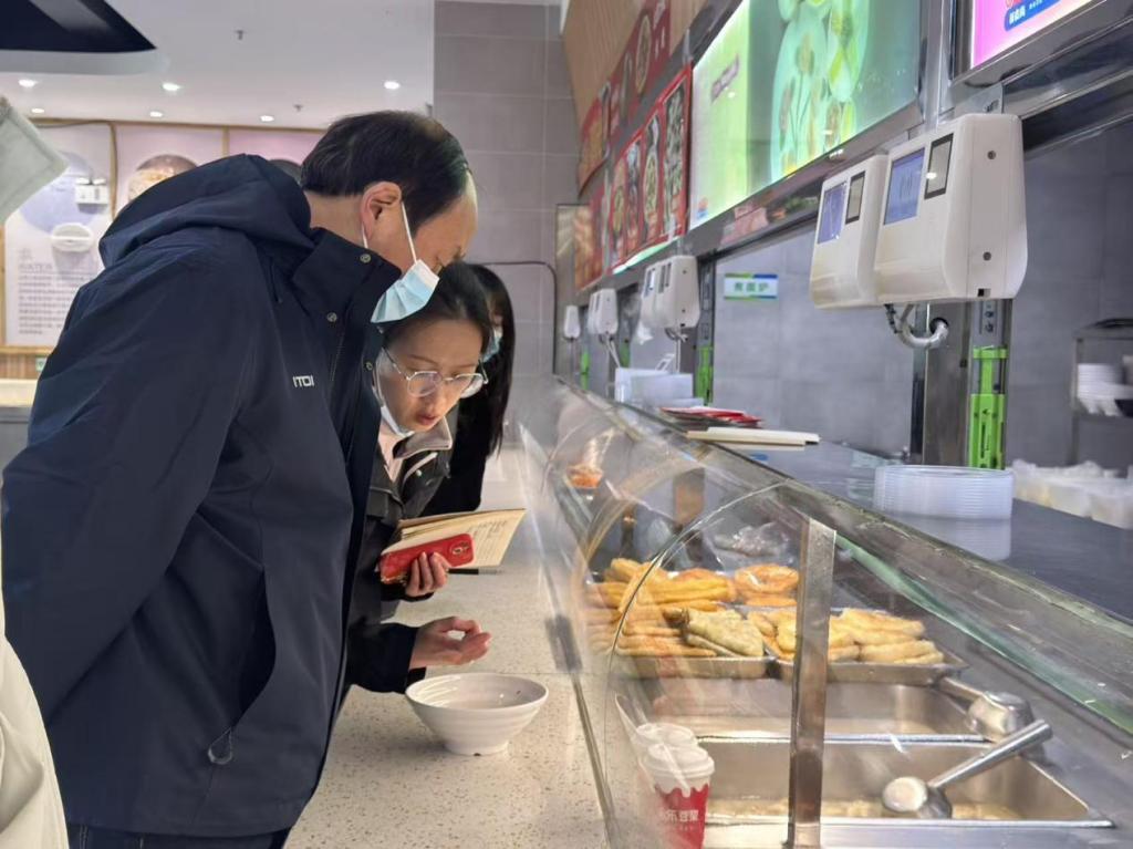 检查期间,陈智刚校长实地查看了食堂后厨、仓储、加工间及售餐窗口等重点区域,对食品原料采购、储存管理、加工流程、餐具消毒、从业人员健康管理等关键环节进行了细致检查,并就日常管理中的细节问题与食堂管理人员进行了现场交流。