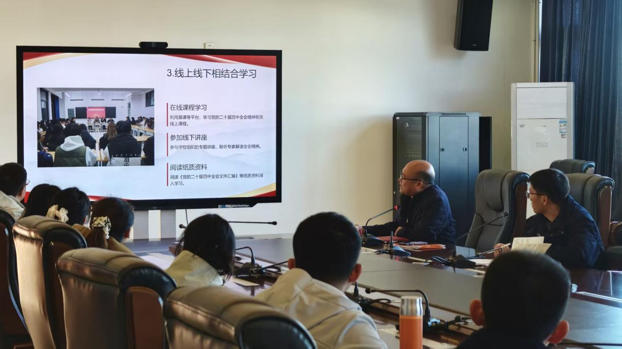 为深入学习贯彻党的二十届四中全会精神,引导共青团骨干准确把握国家发展大局,自觉将青春奋斗融入党和人民事业。12月4日下午,学校党委副书记史祝云在图书馆5-6会议室为学校团委委员、学生干部讲授专题党课。