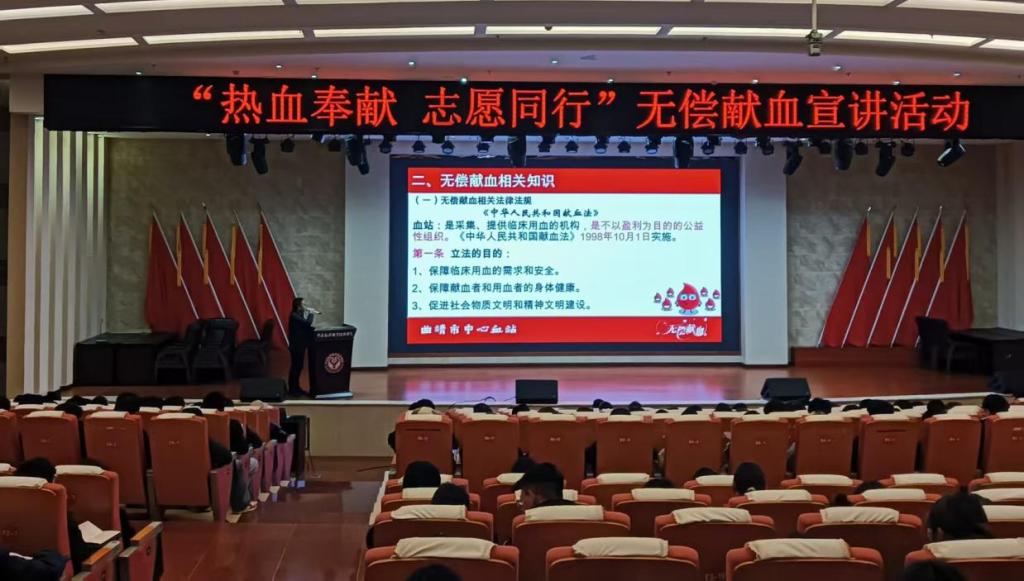为普及无偿献血知识,弘扬无私奉献精神,12月3日晚,校团委举办“热血奉献 志愿同行”无偿献血宣讲会,特邀曲靖市中心血站副站长周法果、市中心医院输血科主任贺坤华、市红十字会无偿献血志愿服务队队长汪志来校宣讲。专家们系统讲解了献血知识、政策和意义,激发了同学们参与公益献血的热情。
