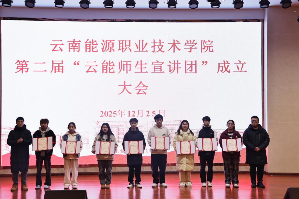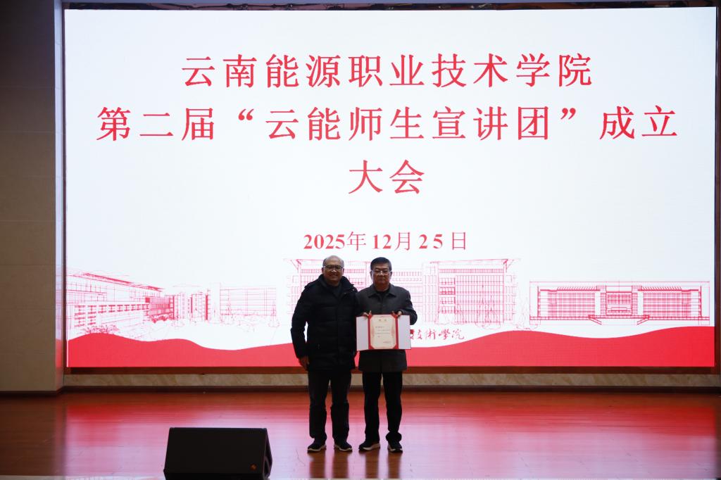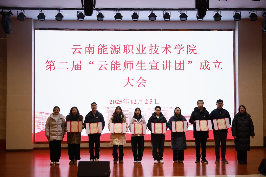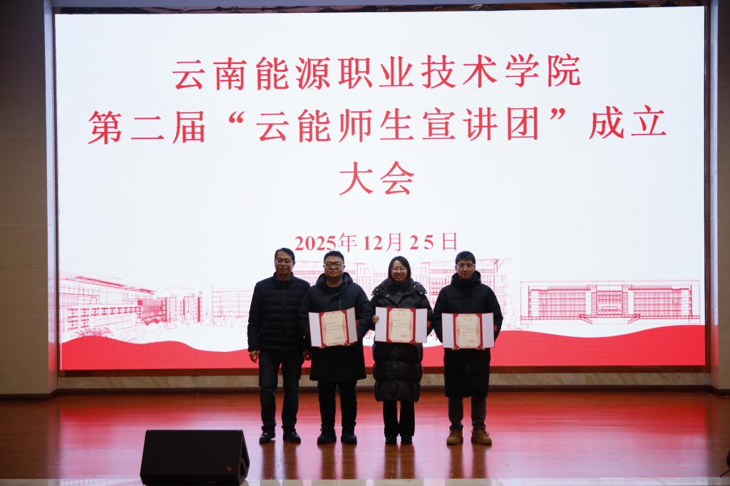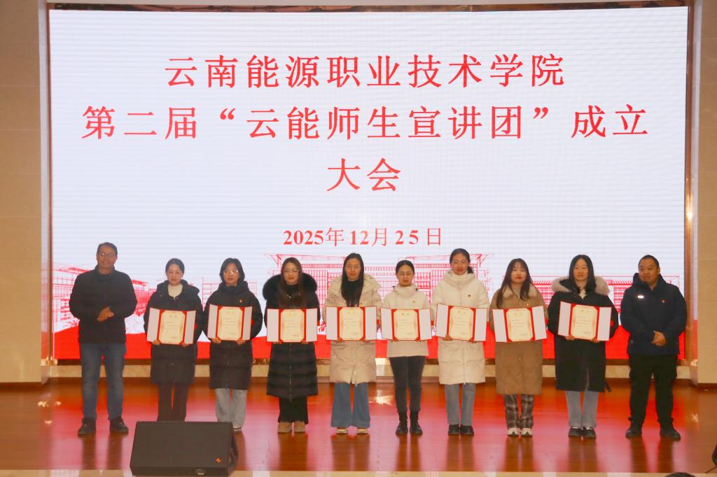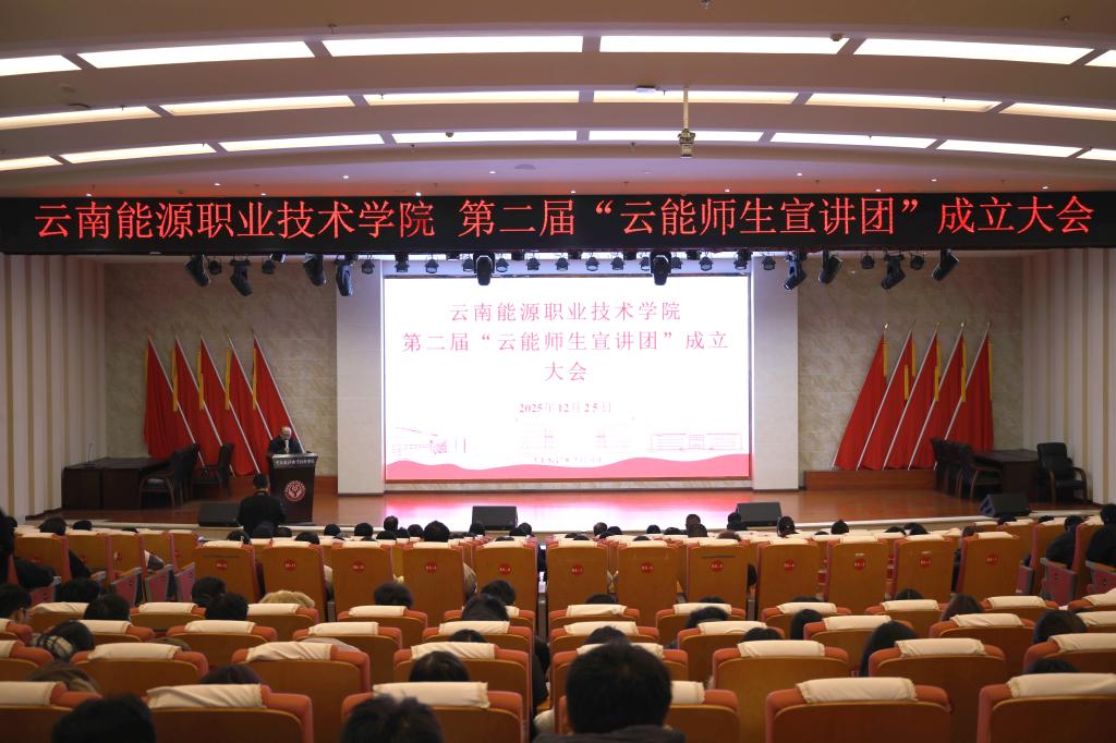 2025年12月25日,学校在麒麟校区图书馆报告厅召开第二届“云能师生宣讲团”成立大会。学校党委副书记史祝云、曲靖市委党校原副校长滕黎南、第二届云能师生宣讲团成员及学生代表共350余人参加了会议。会议由马克思主义学院院长邓祖波主持。