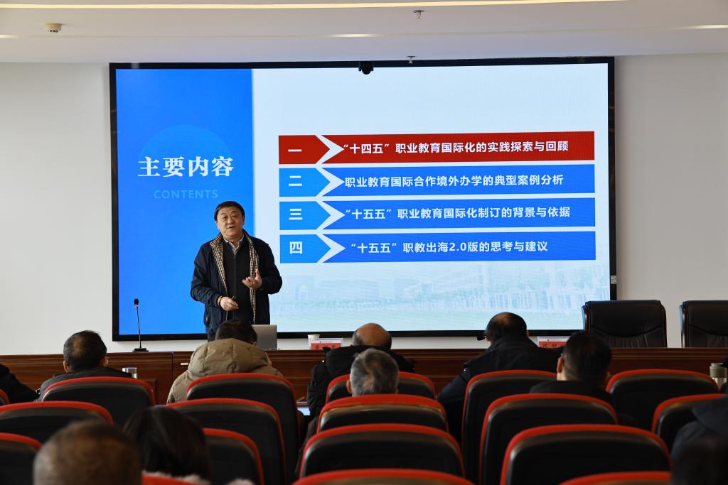 为主动对接学校“十五五”发展规划布局,持续推动学校职教出海与国际合作提质升级,2026年1月8日,学校在麒麟校区5-3会议室开展职业教育境外办学的实践、提质与升级专题讲座。讲座嘉宾特邀天津轻工职业技术学院原党委书记、天津市高等职业技术教育研究会会长、天津市教育国际交流协会副会长戴裕崴。学校校领导,全体中层干部参加讲座。讲座由陈智刚校长主持。