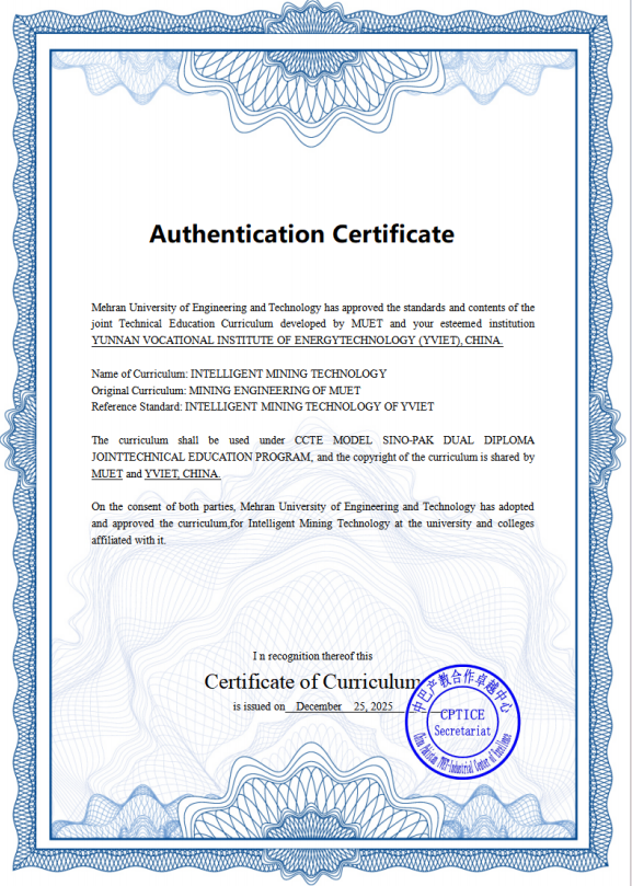 今后,学校将以该认证方案为核心开展教学工作,进一步优化培养模式,依托优质课程资源与先进教学体系,持续推进留学生培养,为中巴矿业产业输送更多具备国际竞争力的高素质技术技能人才。