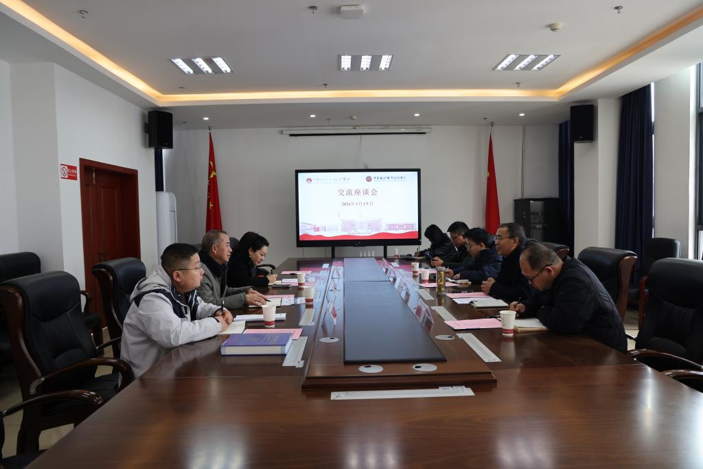 调研结束后,双方在图书馆5-30会议室举行座谈交流。会议伊始,参会人员共同观看了云南能源职业技术学院宣传片,直观感受了学校的办学底蕴与发展活力。随后,桂林斌副校长代表学校对王三宁副院长一行的到来表示热烈欢迎,并对参会嘉宾及学校在学科专业建设、产教融合、实训基地建设、人才培养等方面的经验做法作了简要介绍。随后,王三宁副院长对六盘水职业技术学院的办学现状与发展规划作了简要介绍。