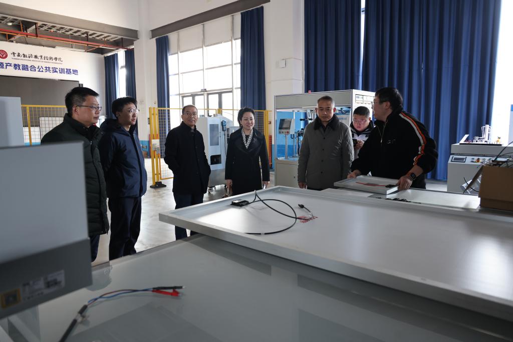 1月15日,六盘水职业技术学院副院长王三宁率领双高办副主任朱博、工业系副主任胡英一行到我校开展调研交流活动。学校党委委员、副校长桂林斌及相关部门主要负责人陪同调研。