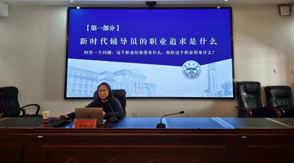 付秋静老师以“新时代辅导员的职业追求和成长路径”为题,系统阐述了辅导员在落实立德树人根本任务中的使命担当。她指出,辅导员应坚守育人初心,服务学生全面成长,不断提升自身专业能力,实现从“职业化”到“专业化”再到“专家化”的进阶发展,并鼓励辅导员在实践与理论的循环中不断提炼经验、拓展职业影响力。