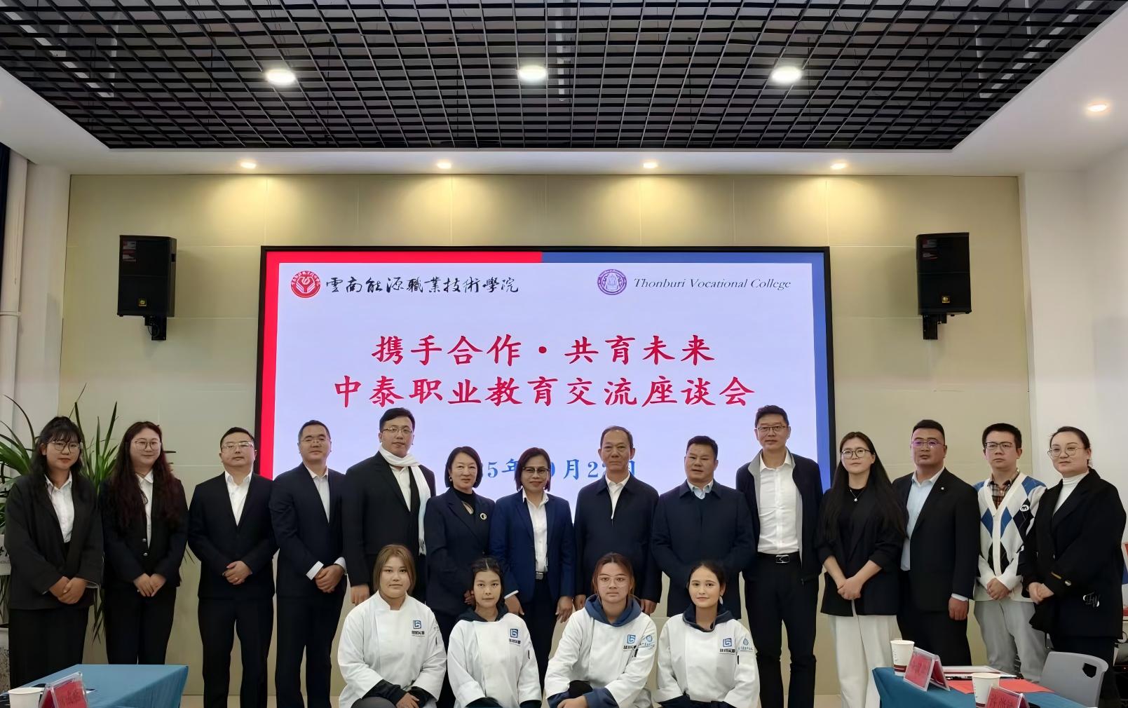 为践行“留学中国・学在云南”品牌建设理念,推动中泰职业教育交融互鉴、深度共进,10月22日,泰国吞武里职业学院校长 Krittiya Wanghom(克里蒂亚・旺霍姆)、中泰双学历项目负责人 Siriraj Thammakoson(林明贤)一行到访我校,开展了一场以职教为桥、以友谊为核的交流座谈。