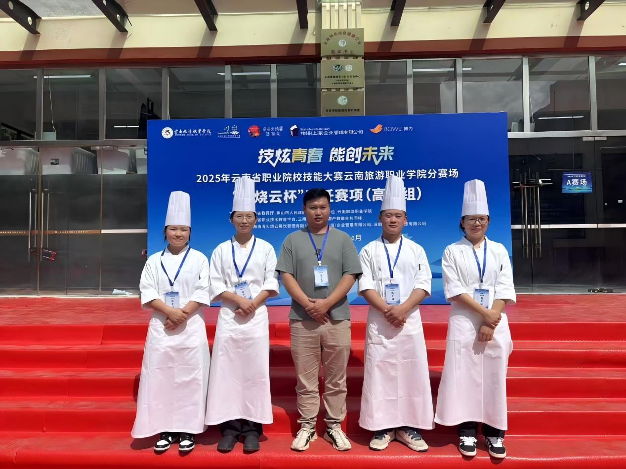 2025年10月12-14日,由云南省教育厅主办的2025年云南省职业院校技能大赛“火烧云杯”烹饪赛项(高职组)在云南旅游职业学院举行,本次比赛共有来自全省31个参赛队同台竞技。经过激烈角逐,我校现代服务产业学院由李章响、和迪、孔德盛、金筱4名同学组成的队伍荣获一等奖,由郑富民、苏闪闪、孔祥冉、张根丽4名同学组成的队伍荣获二等奖。