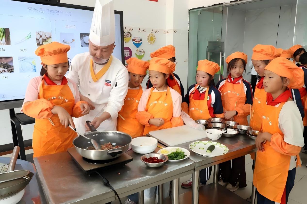 活动紧扣水桥小学“六年学会十二道菜”项目,按年级定制课程,3个厨艺团队累计开展38节现场课,实现全年级覆盖。