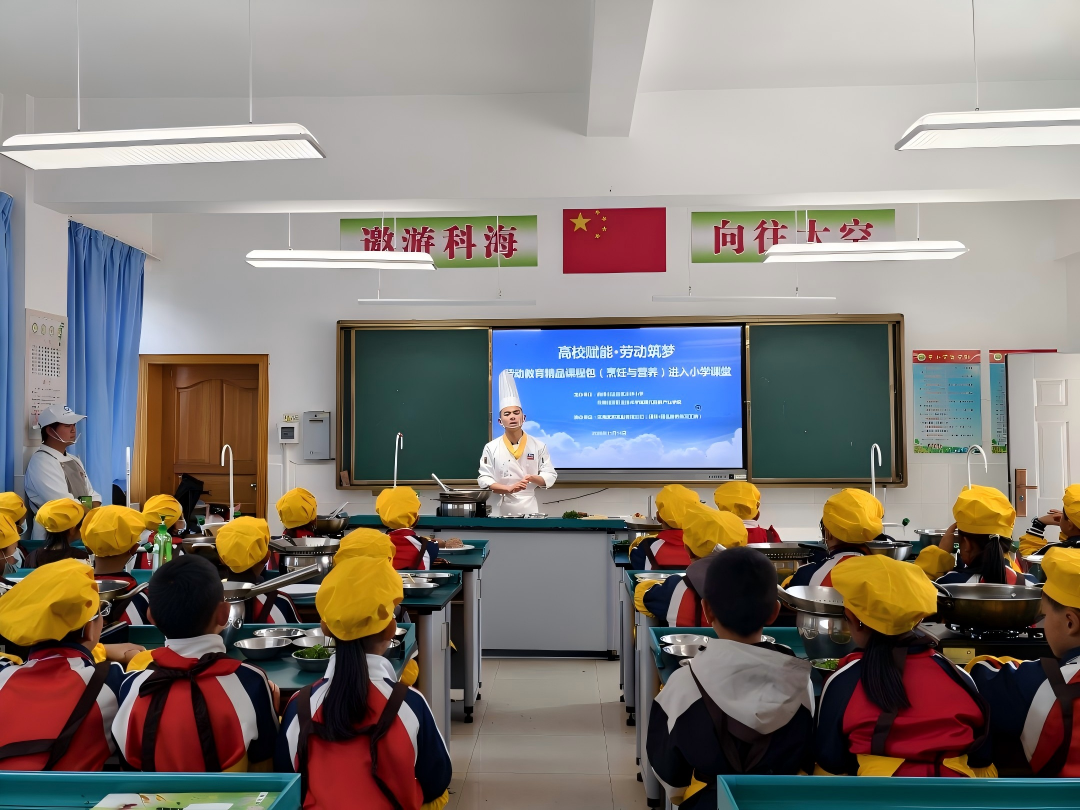 此次活动是学院“高校 + 中小学”校地协同模式的生动实践,学院充分发挥烹饪专业的师资优势与学生人才储备,为基础教育劳动课程注入专业动能。未来,学院将持续深化校地合作,不断优化劳动教育课程体系,推动更多师生走出校园、服务社会,在践行职业教育社会责任的同时,为学生搭建优质实践平台,助力成长成才。