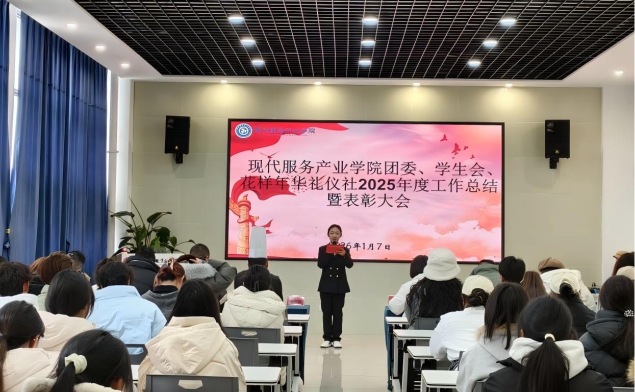 为总结过往、表彰先进、展望未来,2026年1月7日,现代服务产业学院召开2025年度学生工作总结暨表彰大会。学院领导、师生代表齐聚现场,共话成长、共启新程。