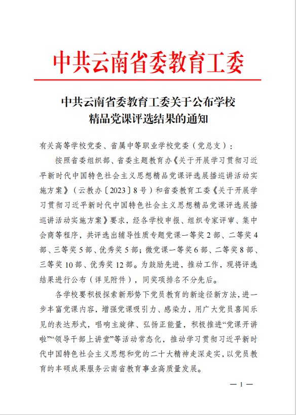 党建引领强根基,红色基因铸魂育人。学院始终把党的政治建设摆在首位,以习近平新时代中国特色社会主义思想为指导,深耕党组织特色建设,推动党的创新理论“进教材、进课堂、进头脑”。近年来,学院全面落实立德树人根本任务,党建质量显著提升,教师党支部被中共云南省委教育工委选树为第五批高校“一流党建”示范党支部,学生党支部被中共云南省委教育工委选树为第六批高校“一流党建”示范党支部,微党课《立足新发展阶段,助推区域经济高质量发展》获评“省级精品党课三等奖”,为学院发展提供了坚强的政治保障和组织保障。