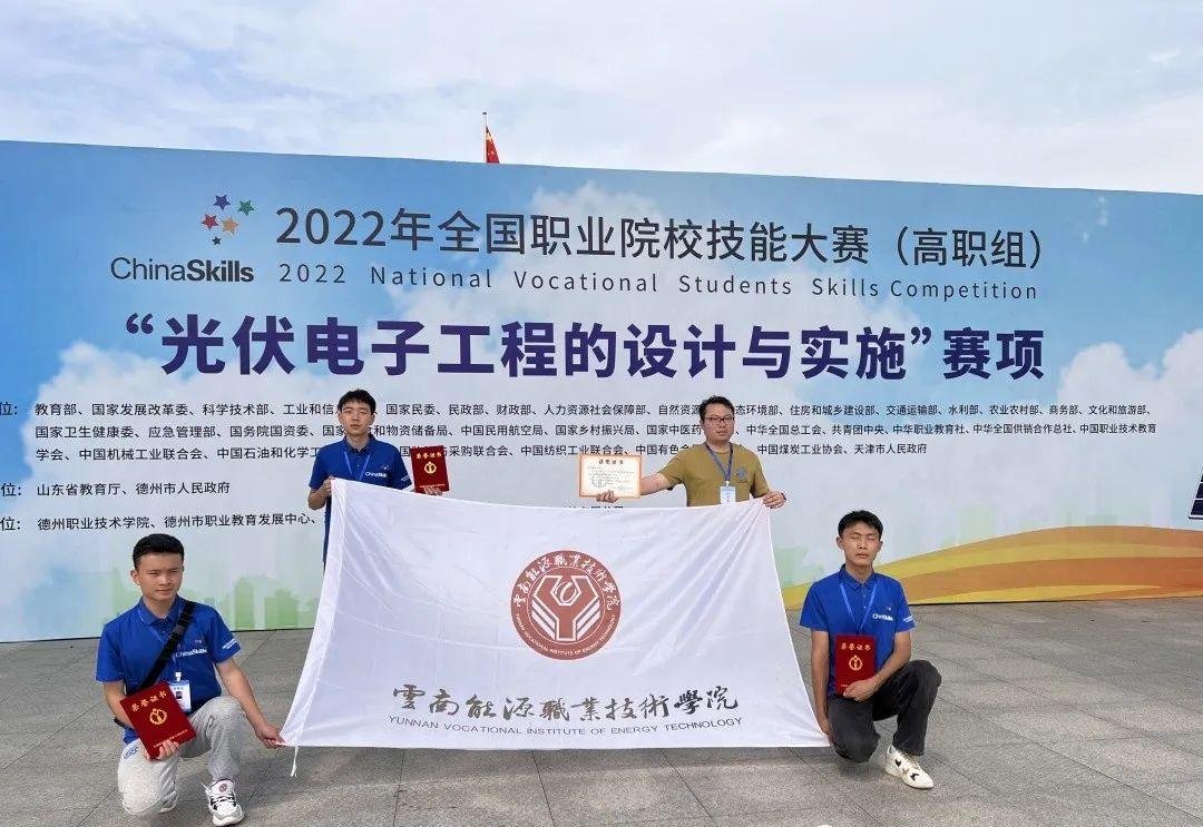 思政教育铸匠心,赛学互促增强实效。学院通过深化“课程思政”建设,把思想政治工作贯穿教育教学全过程,着力培养德技并修、担当民族复兴大任的时代工匠,广泛组织学生参加各类竞赛。近年来,学生获全国职业院校技能大赛高职组光伏电子工程的设计与实施赛项中荣获团体三等奖、全国第十八届“振兴杯”青年职业大赛青年组优胜奖、“一带一路”暨金砖国家技能发展与技术创新大赛首届新能源储能技术与应用赛项决赛(高职组)一等奖、第八届云南省“互联网+”大学生创新创业大赛金奖等省级及以上权威赛事中获奖60余项。