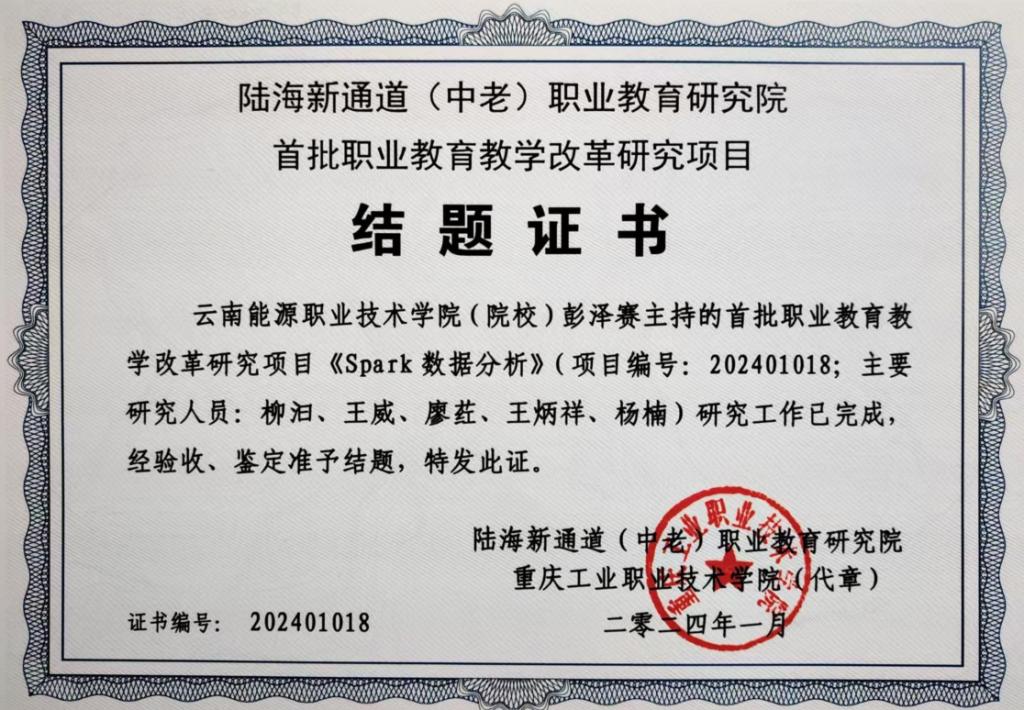 图:陆海新通道(中老)职业教育改革项目结题证书