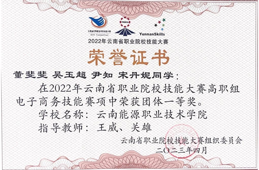 图:2022年云南省职业院校技能大赛电子商务赛项一等奖证书